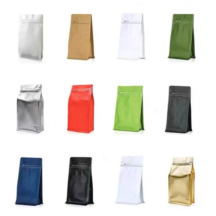8/12/16 oz Custom Printed Eight Side Sealed Flat Bottom Pouch Coffee Packaging Bags with Valve and Zipper
