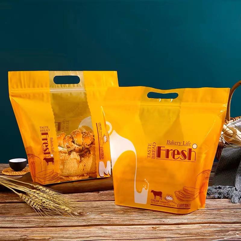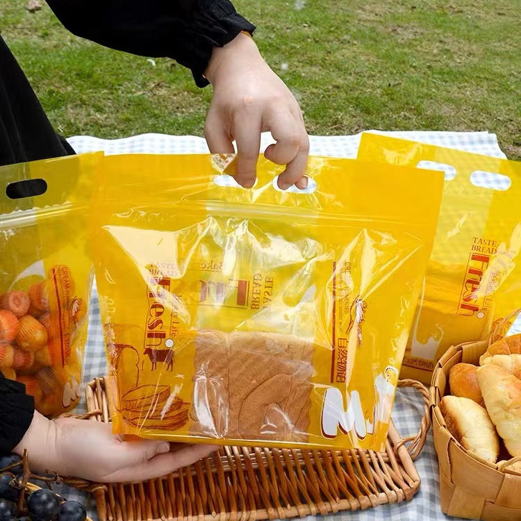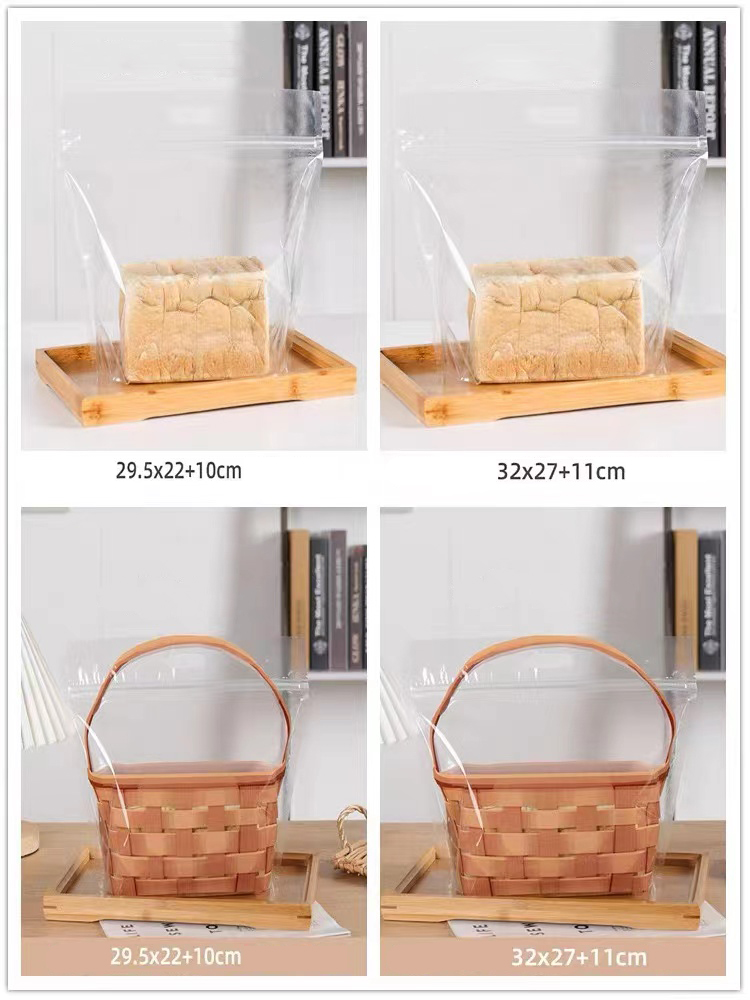 Basket and panda pattern transparent croissant bread flat bottom bag with zipper reusable