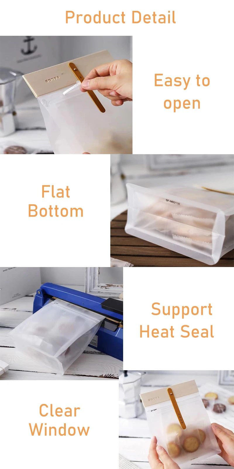 | Bag style | Flat Bottom, Stand Up, Side Gusset, Quad Seal, Middle Seal, etc. | ||||||