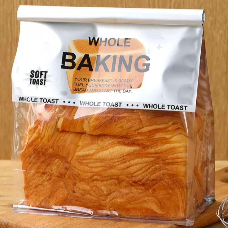 Custom Bakery Aluminum Foil Packaging Bag Bread Loaf Bagel Toast Bakery Bread Paper Bags Plastic Clear Window Bag with Tin Tie