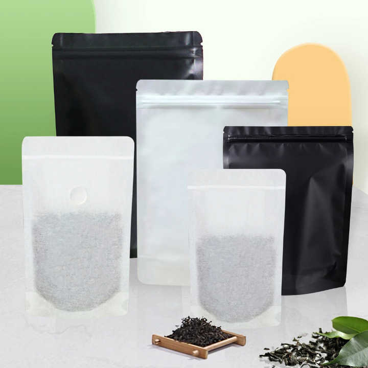 Custom Coffee Bags Biodegradable Resealable Cotton Paper Zip Smell Proof Packaging Bags Coffee Tea Nuts Snack Stand Up Pouch