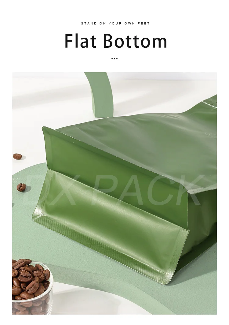 Custom Digital Printing Coffee Bean Powder Coffee Packaging Pouch Flat Bottom Coffee Bag With Easy Tear Zipper