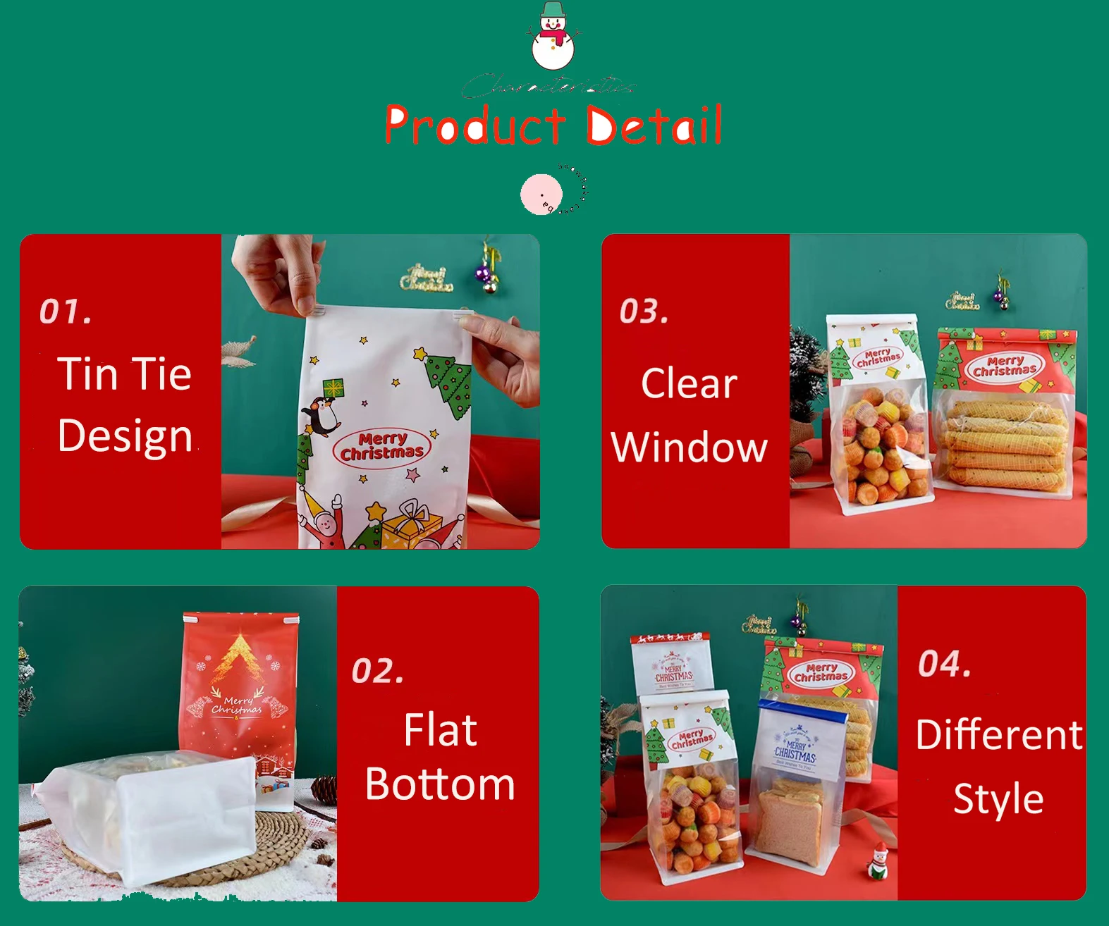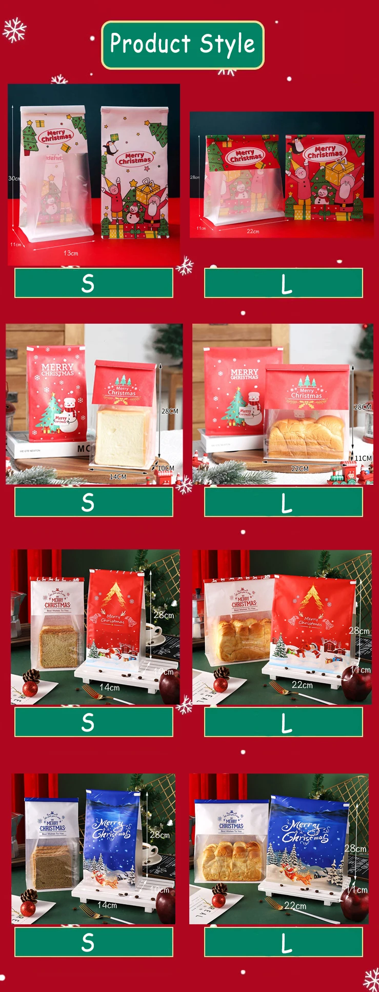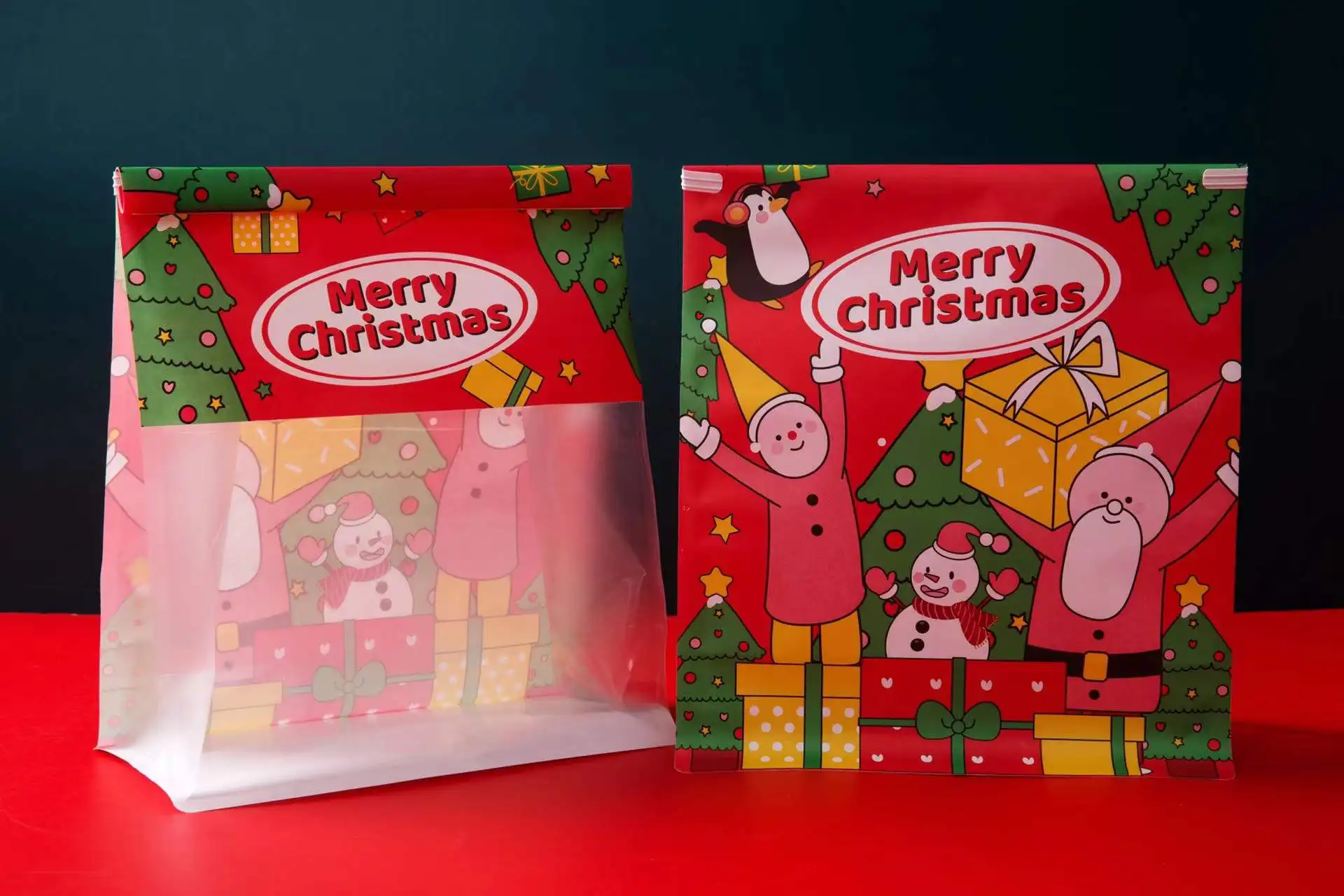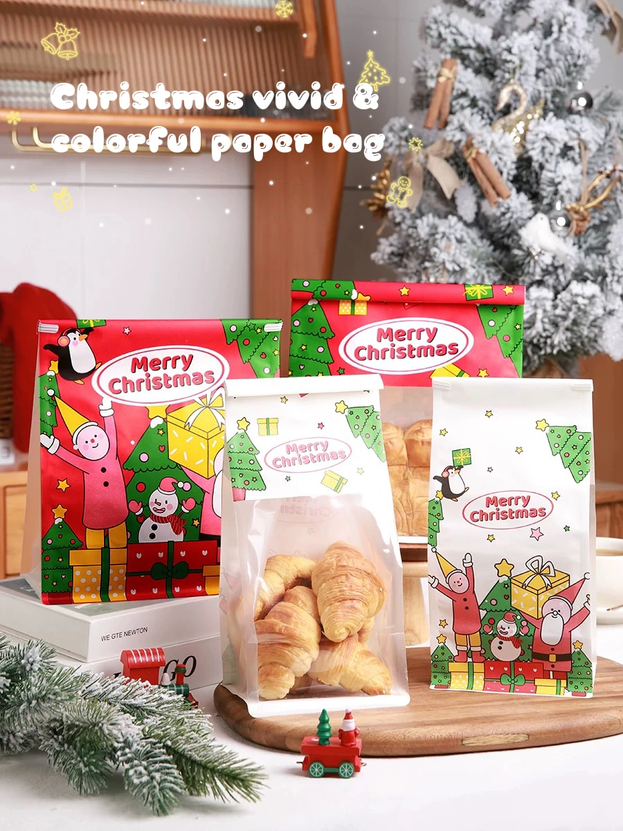 Custom Matte Christmas Paper Bread Bags Bakery Tin Tape Seal Toast Bag with Window