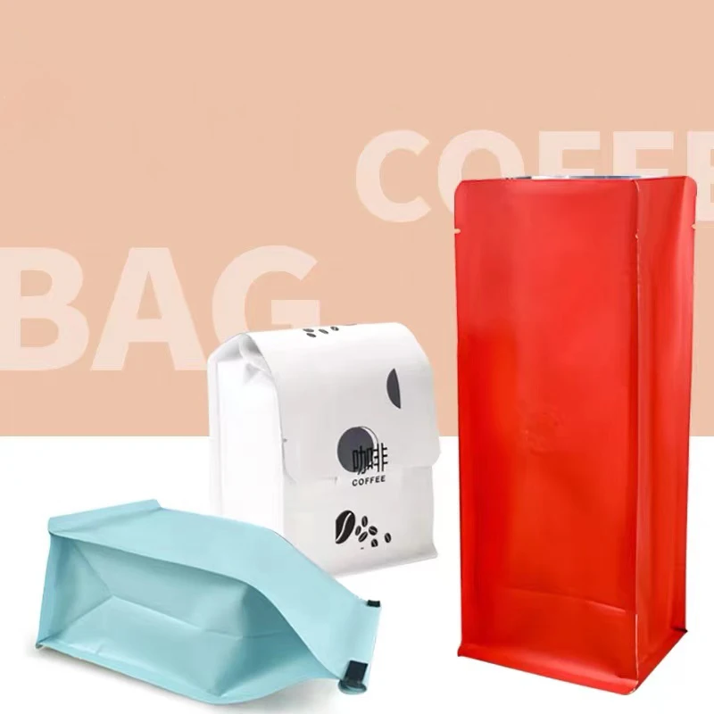 Custom Matte Printing Heat Seal Square Bulk Aluminum Foil Flat Bottom Pouch Recyclable Coffee Packaging Bags