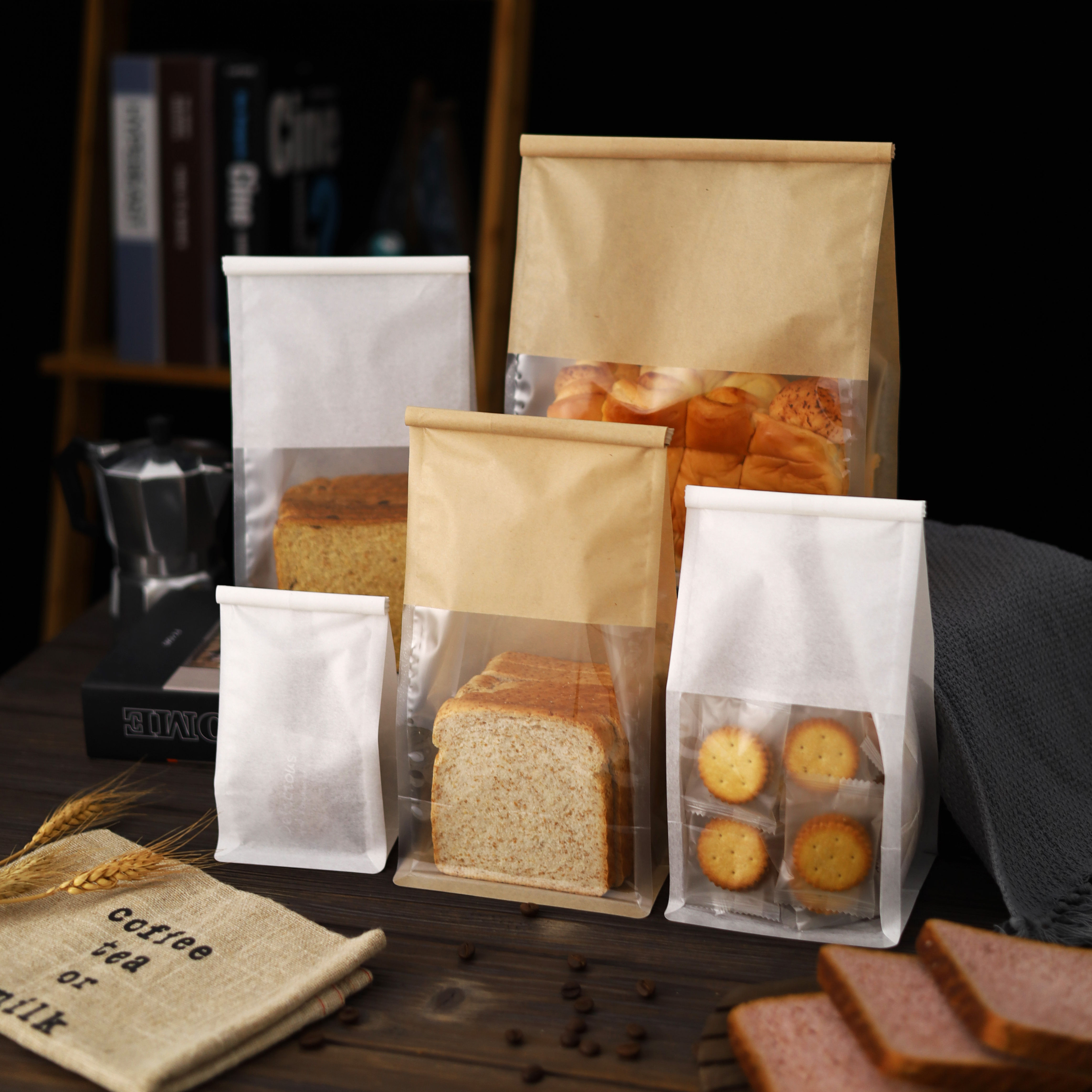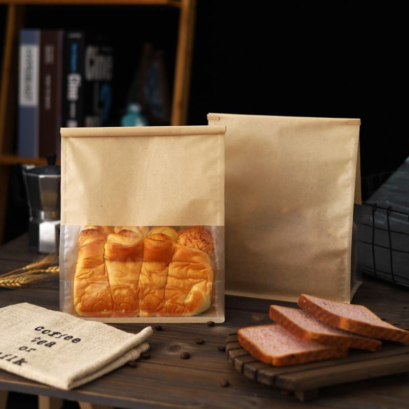 Custom Printed Logo Brown Cotton Paper Bread Kraft Paper Bakery Bags with Tin Ties