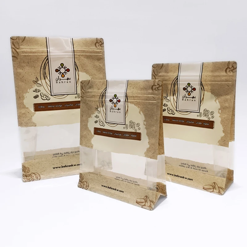 Custom Printed Resealable Square Ziplock Coffee Beans Bag Side Gusset Nuts Flat Bottom Packaging Bag with Zipper