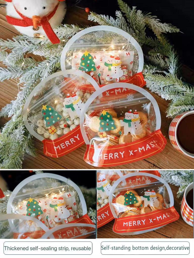 Custom Printed Stand Up Bags Christmas Candy Packaging Biscuit Bags Irregularly Round Die Cut Mylar Bags