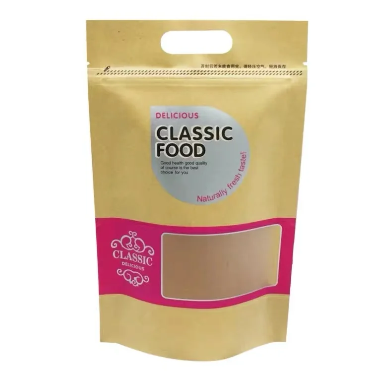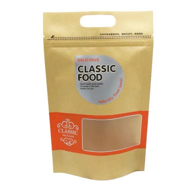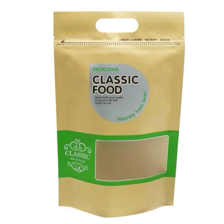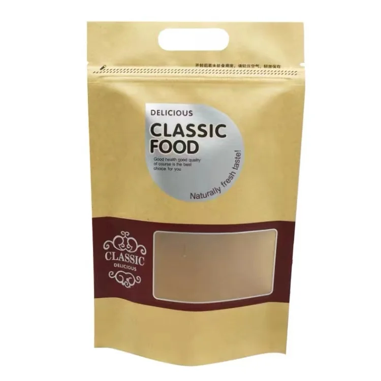 Custom Printed Ziplock Kraft Paper Stand up Pouch/ Food Packaging Bag with Zipper and Window