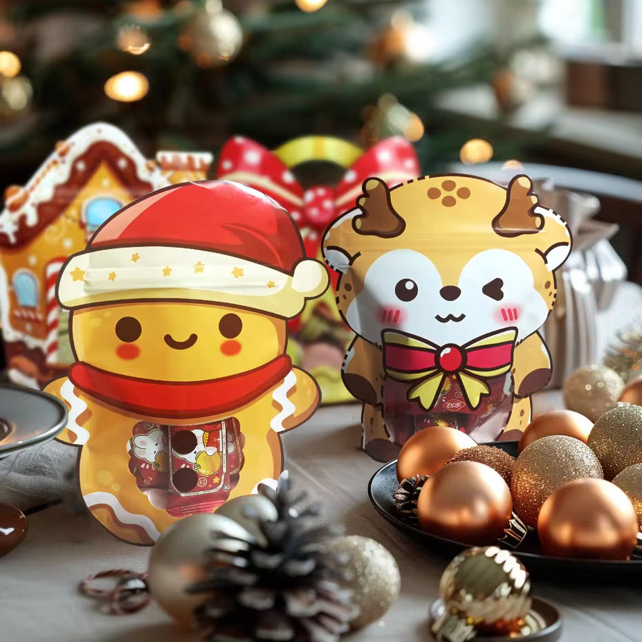 Custom food packaging plastic bag PET/CPP pouch with ziplock standing Christmas candy goodie bag zipper