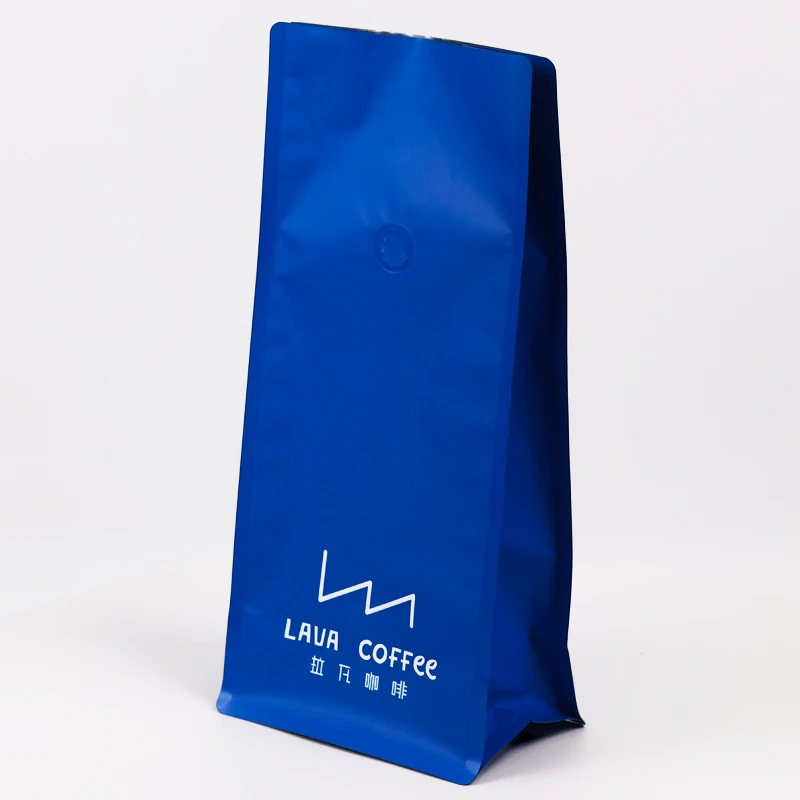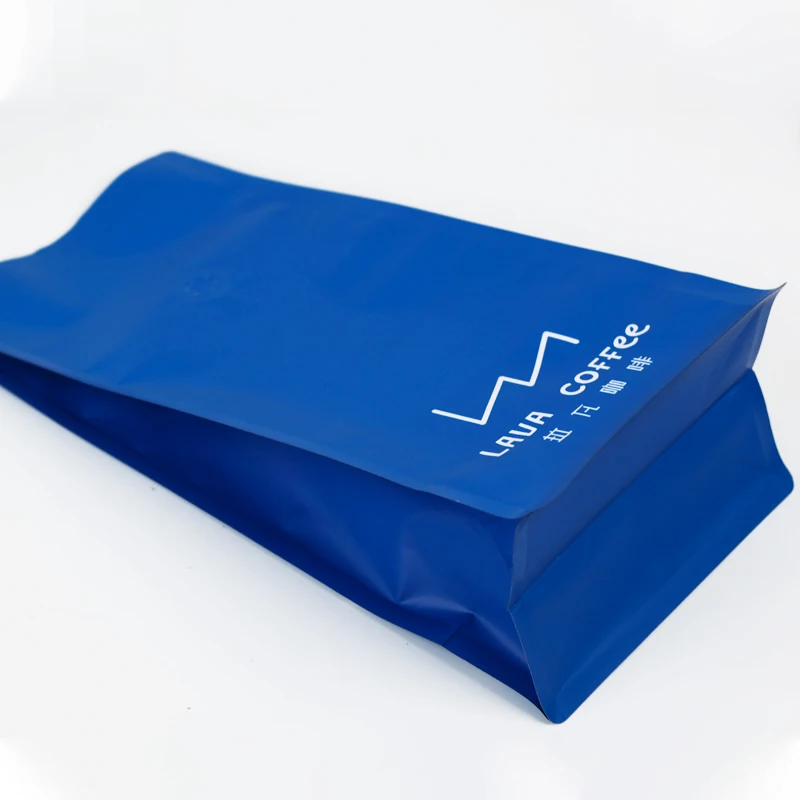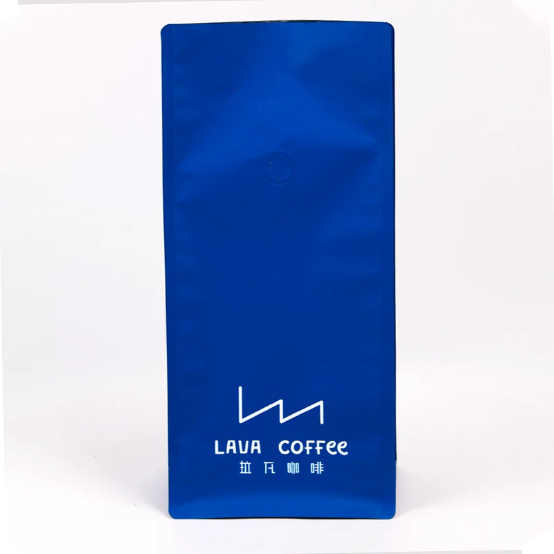 Custom print matte flat bottom aluminum foil coffe bag stand up pouch coffee bags with valve and zipper