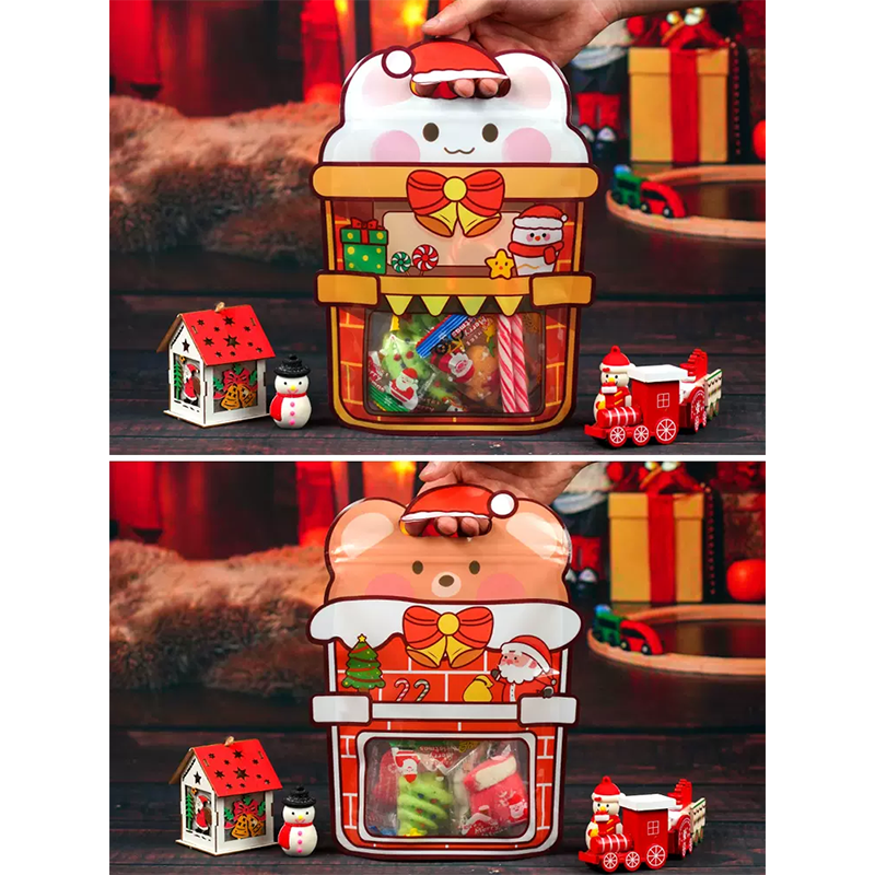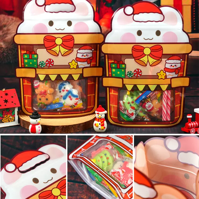 Custom printed special shape pouch food grade clear matte recyclable soft candy stand up pouches christmas packaging bags