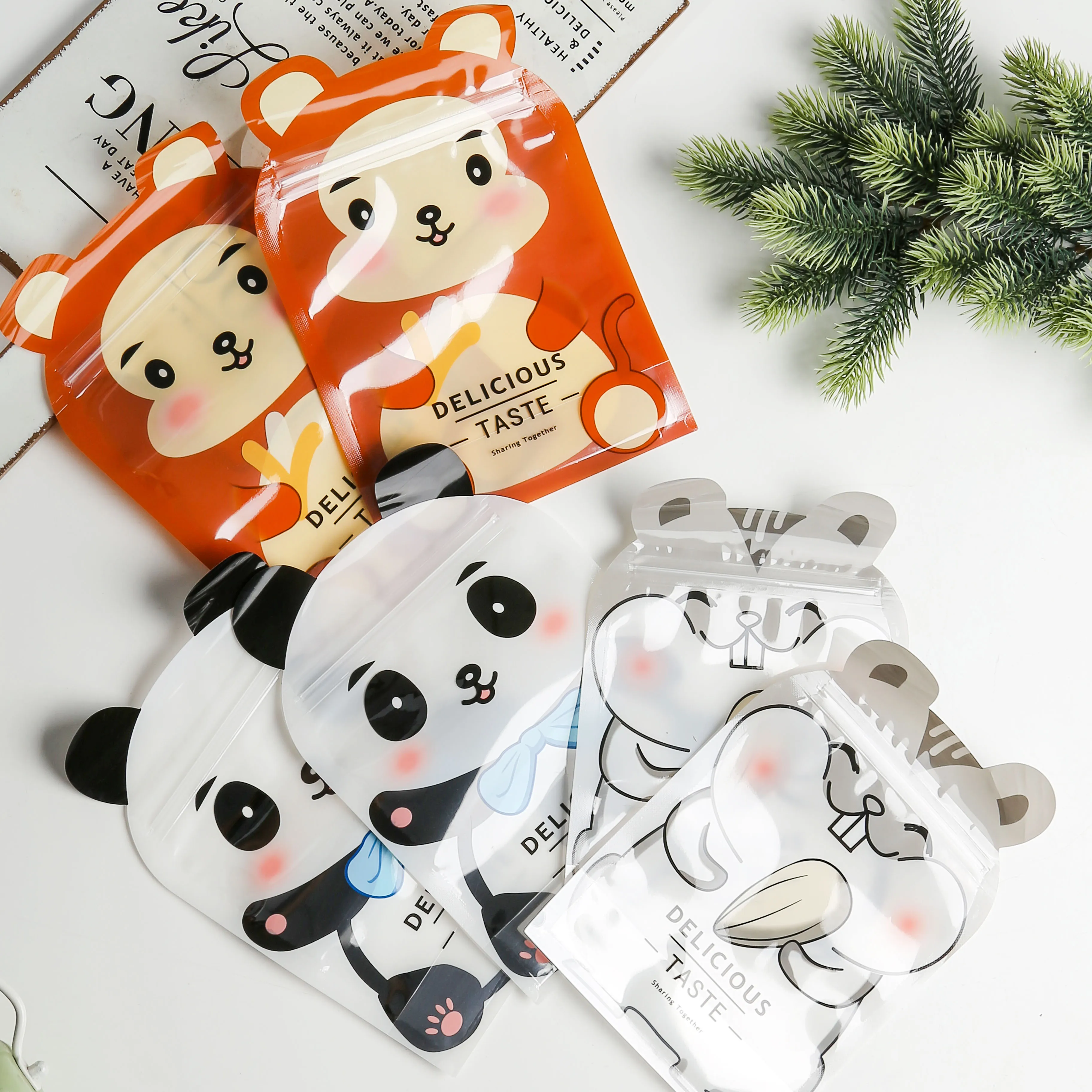 Custom shapes stand up pouch animal printed plastic small bag zip lock cartoon packaging bags
