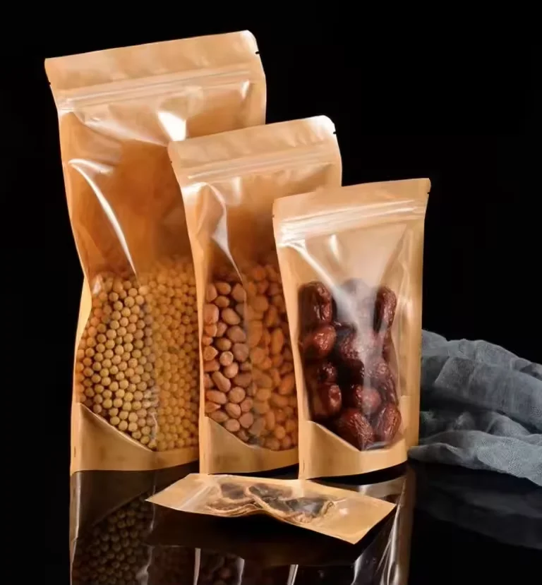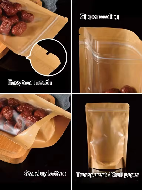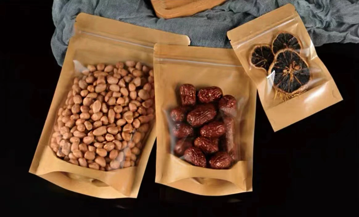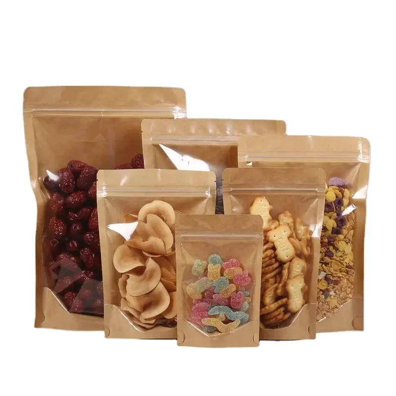 Custom stand up pouch bag kraft paper yin yang packaging bags zip lock PET transparent stand up bag with clear window