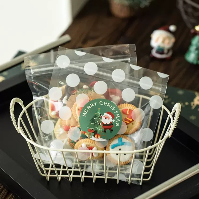 Customised Biscuit Plastic Packaging Bags Handmade Cookies Christmas Baking PE PVC Transparent Self Sealing Zip Stand up Pouches