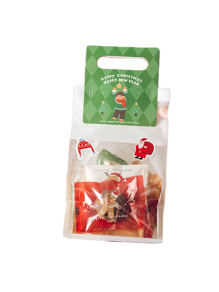Customized Christmas bakery packaging kraft cotton paper toast bags clear bread packaging bags flat bottom pouch with window