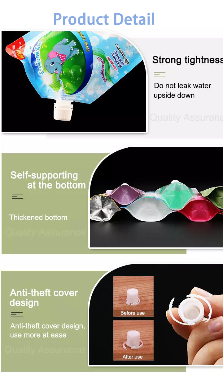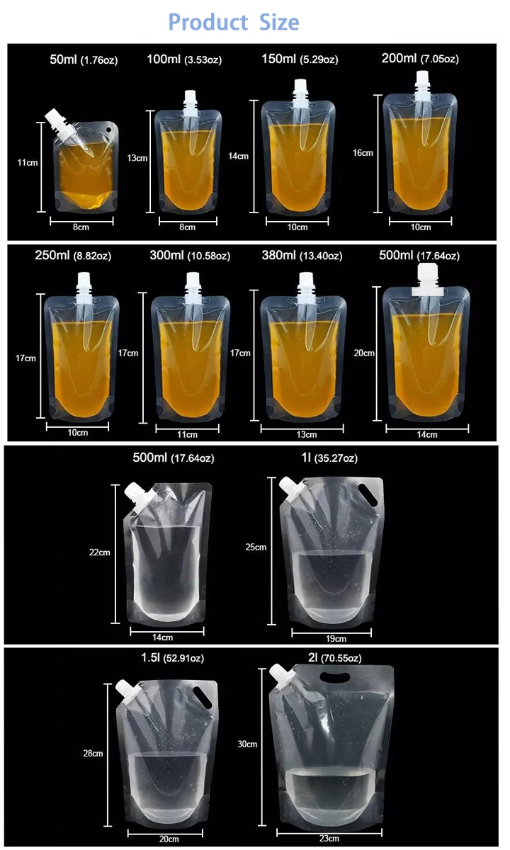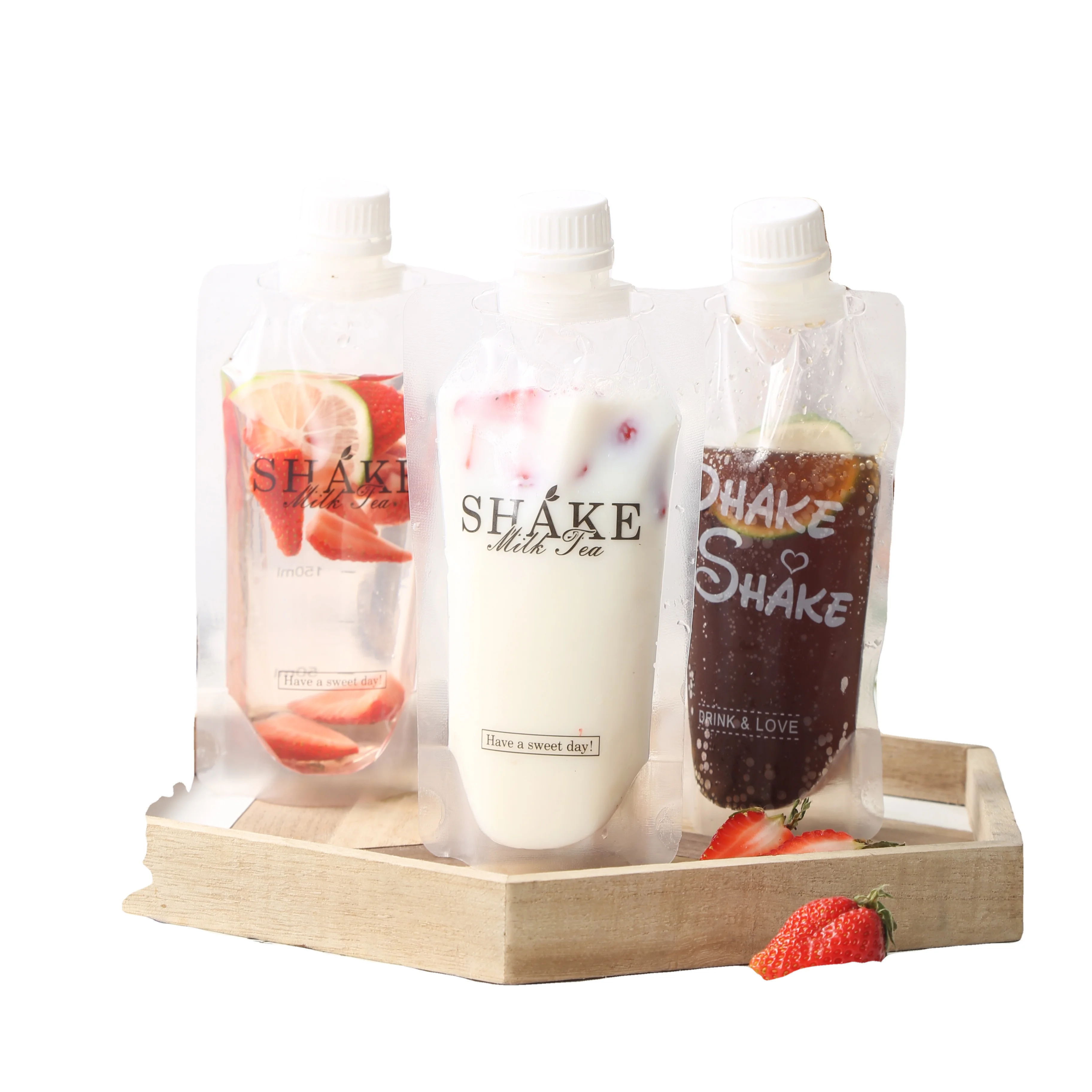Customized biodegradable liquid food disposable stand up plastic juice drink spouted pouch
