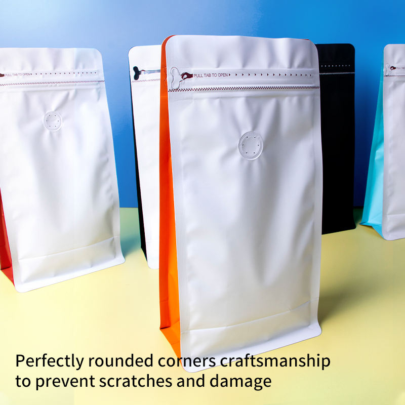 Eco Friendly Custom Resealable Printed Vertical coffee bag Label Flat Bottom Gusset One Way Valve