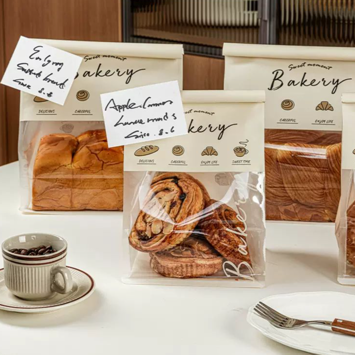 Eco Friendly Food Grade Plastic Paper Toast Flat Bottom Bakery Bread Window Bag With Tin Tie Food Storage Pouch