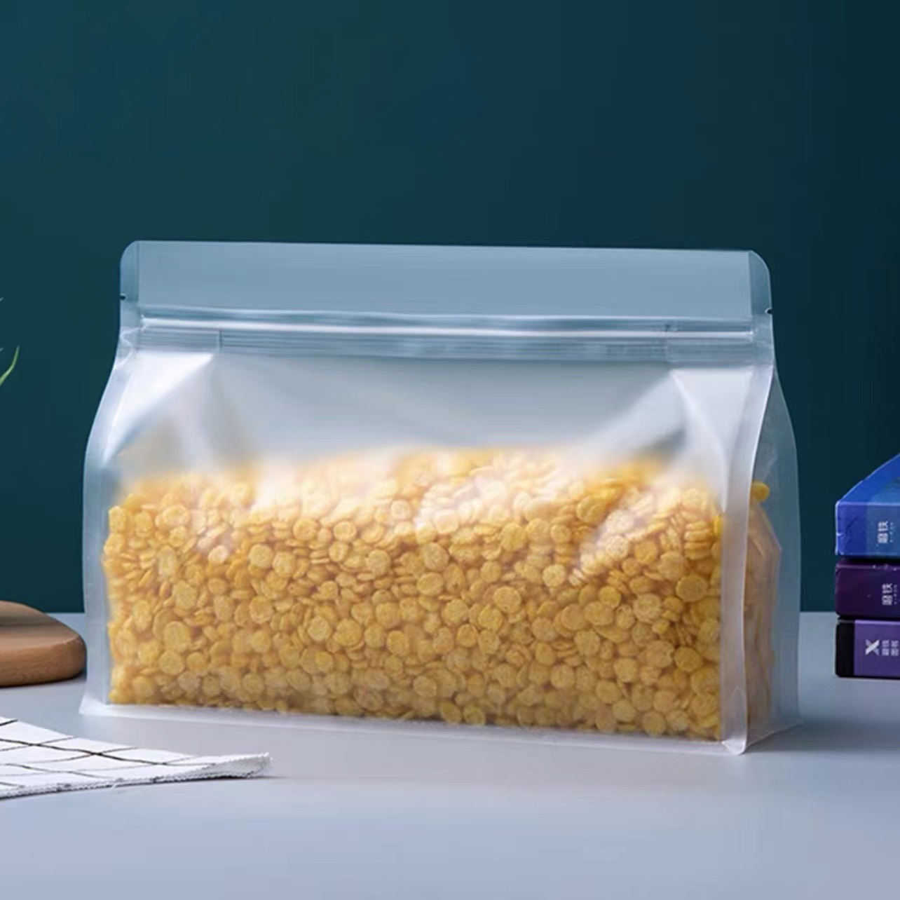 New Product 2024 Custom Resealable Matte Plastic Flat Bottom Zip Seal Standing Pouch Food Packaging Bag for Nuts Biscuits