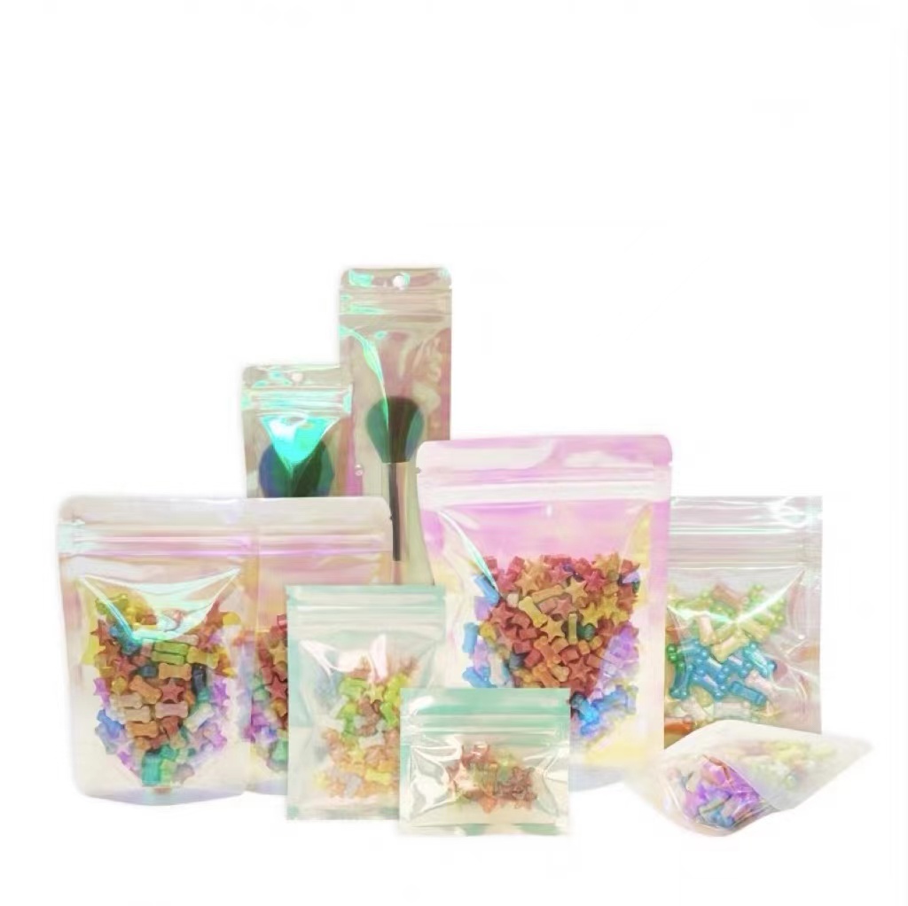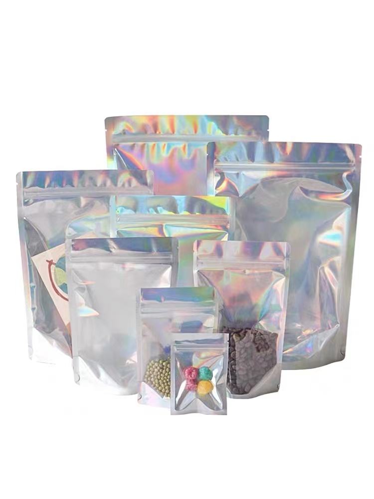 Plain laser self-sealing bags self-standing pouch color rainbow laser zipper