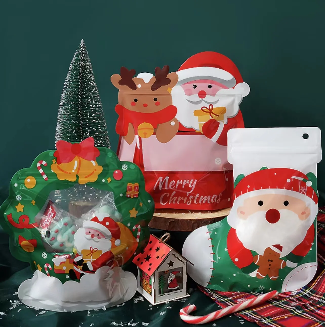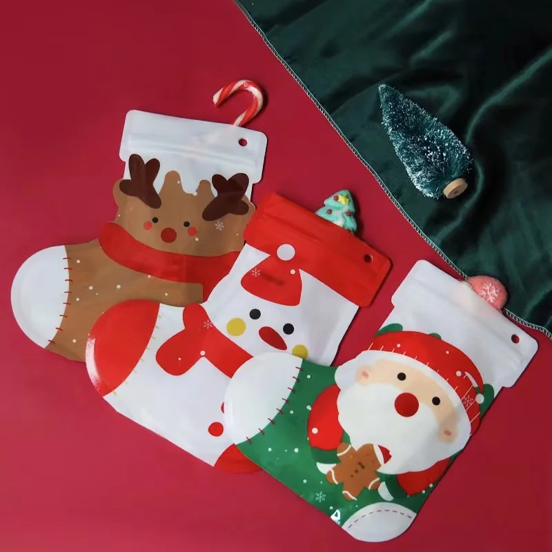 Plastic Mylar Die Cut Irregular Shape Christmas Design Candy Packaging Bags Custom Stand up Pouch for Gift