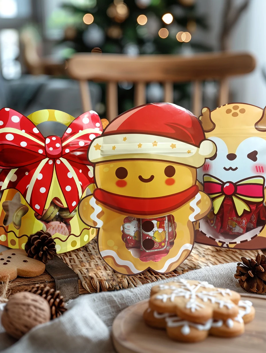 Re-sealable zipper Irregular Shape Packaging Bag Holiday Christmas Food Packaging For Cookies Snack