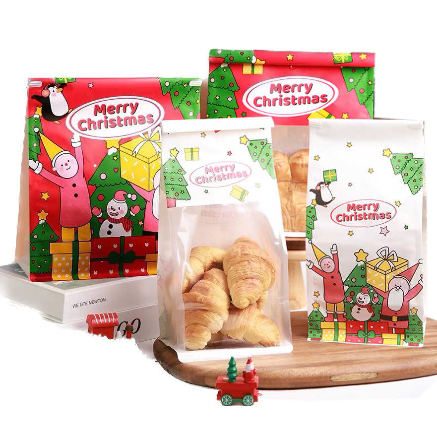 Red Christmas Plastic Shaped Packaging Bag Ziplock Stand Up Pouch for Candy Biscuit Gift Lollipop with Transparent Window