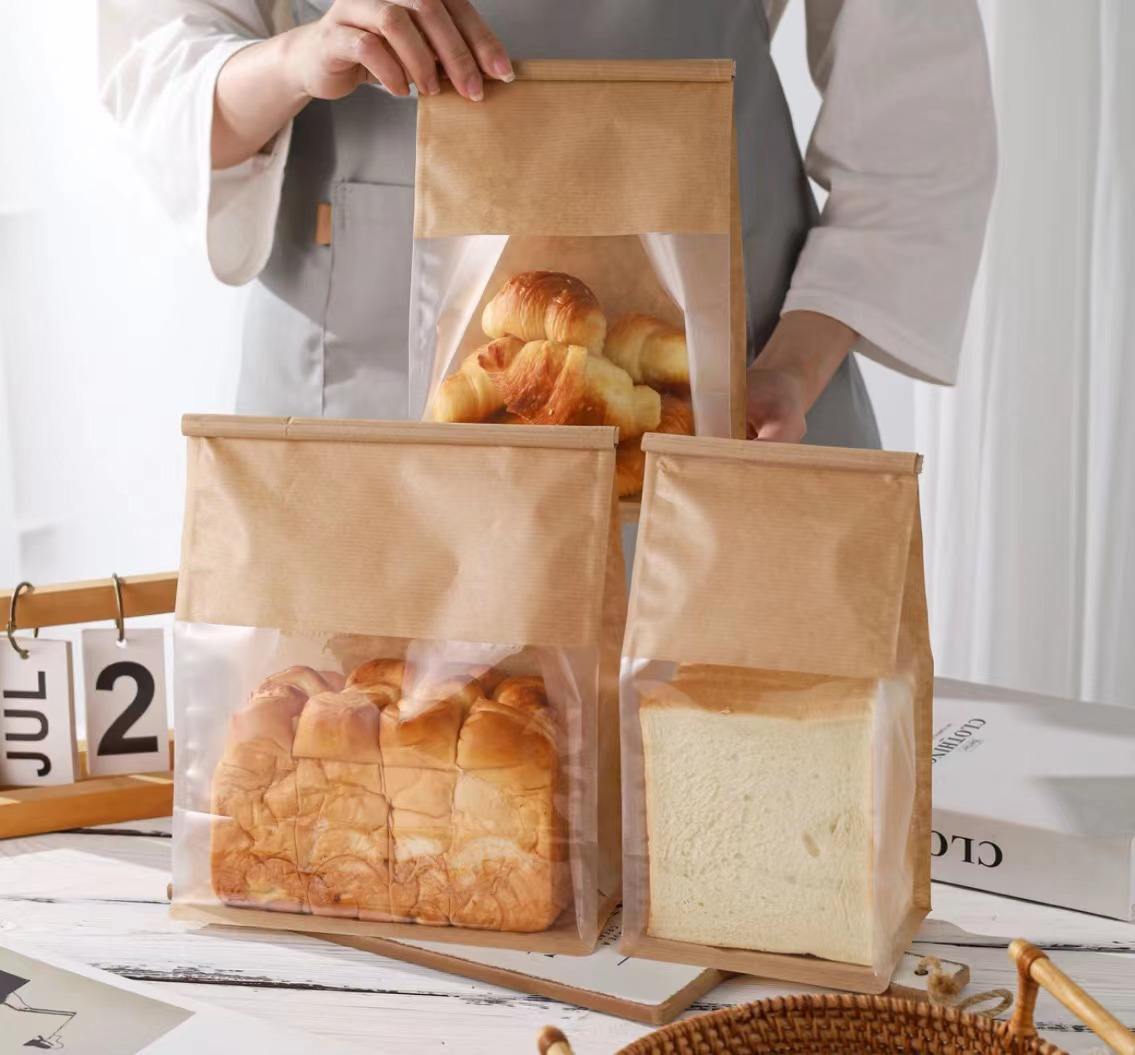 Reusable flat bottom pouch Toast baked bread bag storage roll packing for cookies candy bakery food packaging bag