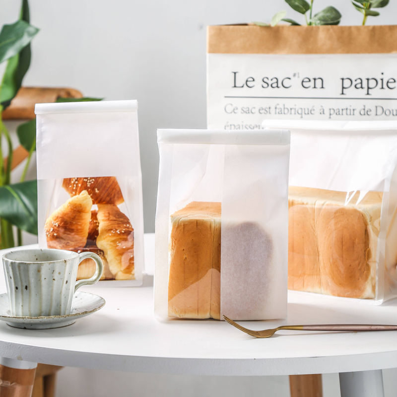 Wholesale Custom Bread Cotton Paper Flat Bottom Bakery Bag for Toast And Cookie Packaging