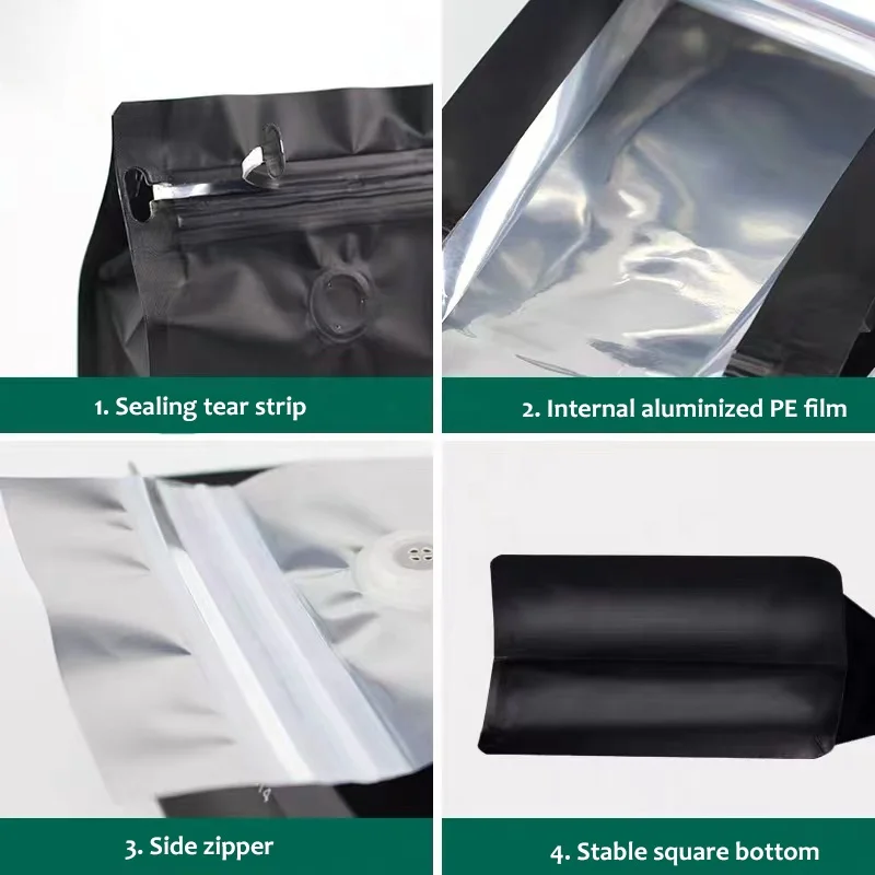 Wholesale Stand Up Coffee Bag Pouch High Quality Zipper Coffee Packaging Bag Custom Coffee Bag with Valve