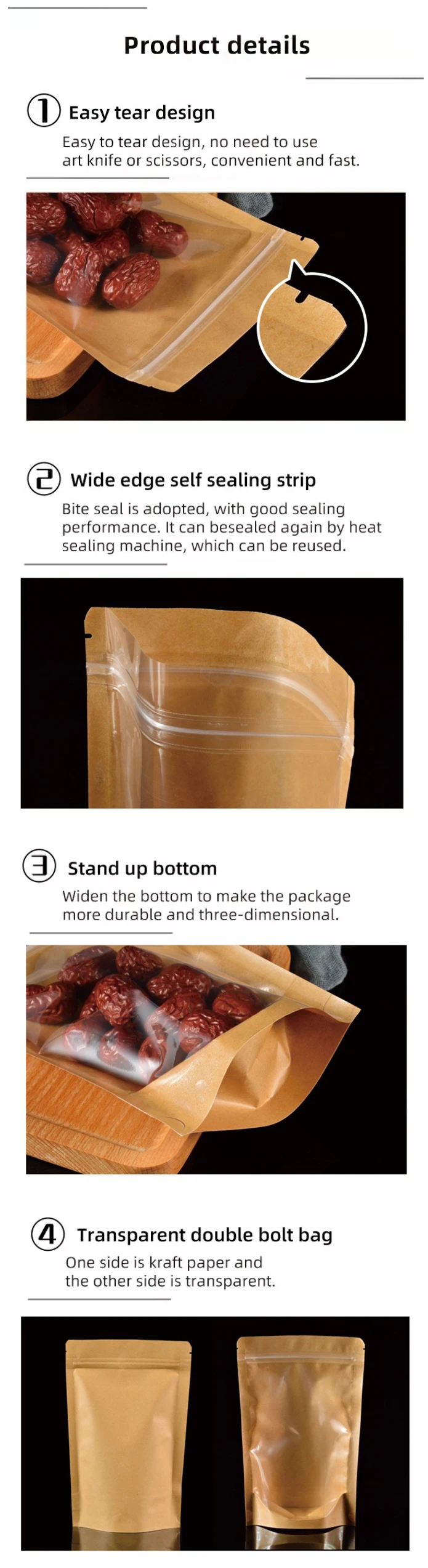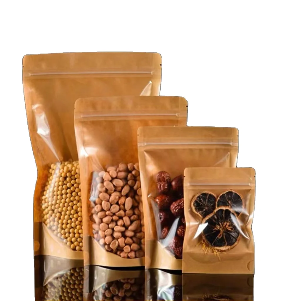 custom packaging bag standing pouch zip lock cookies packaging kraft paper bags stand up pouch with clear window