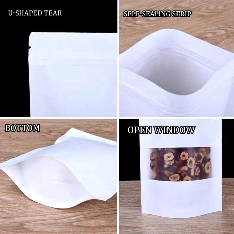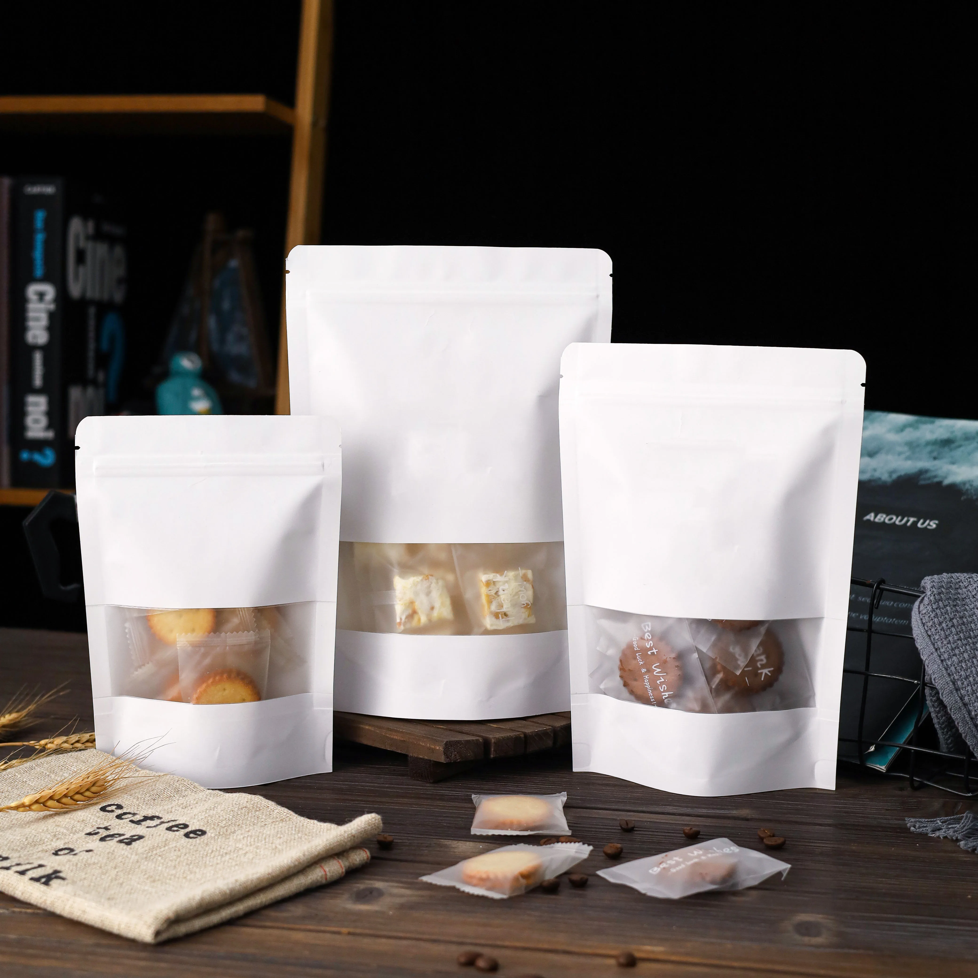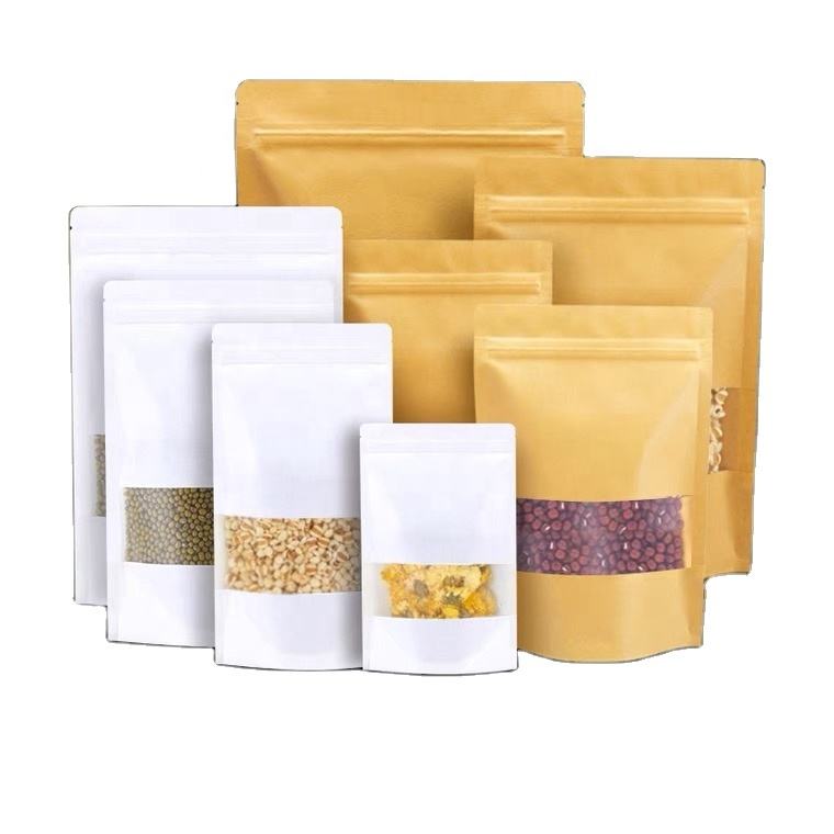 zipper brown bag custom white stand up pouch printing plastic white kraft paper nuts standing up pouch with clear window